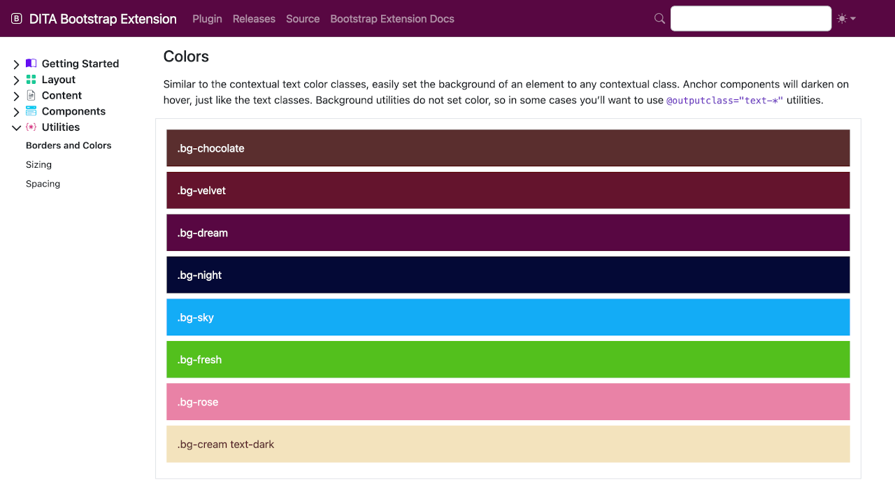 The DITA Bootstrap Extension is a DITA-OT plug-in that incorporates the Bootstrap Extension library and adds the necessary CSS and JavaScript — for sliders, whitebox galleries, parallax components, greyscale images and additional styling options such as new colors.