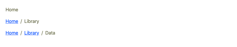 Breadcrumbs are not included by default. You can add a breadcrumb component to each page by setting the parameter --args.breadcrumbs=yes