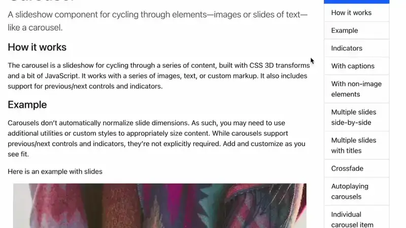 Bootstrap’s Scrollspy component also works with list-groups. An animation of an example ToC menu is shown below.