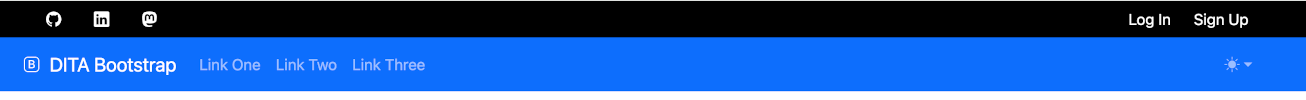 A collapsible menu placed above the main menu can be included by adding the --bootstrap.topbar.hdr parameter to the dita command: